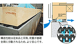 耐腐作用のある土台●耐腐抗菌作用により白アリを寄せ付けず強度・防虫・防腐に優れています。 |